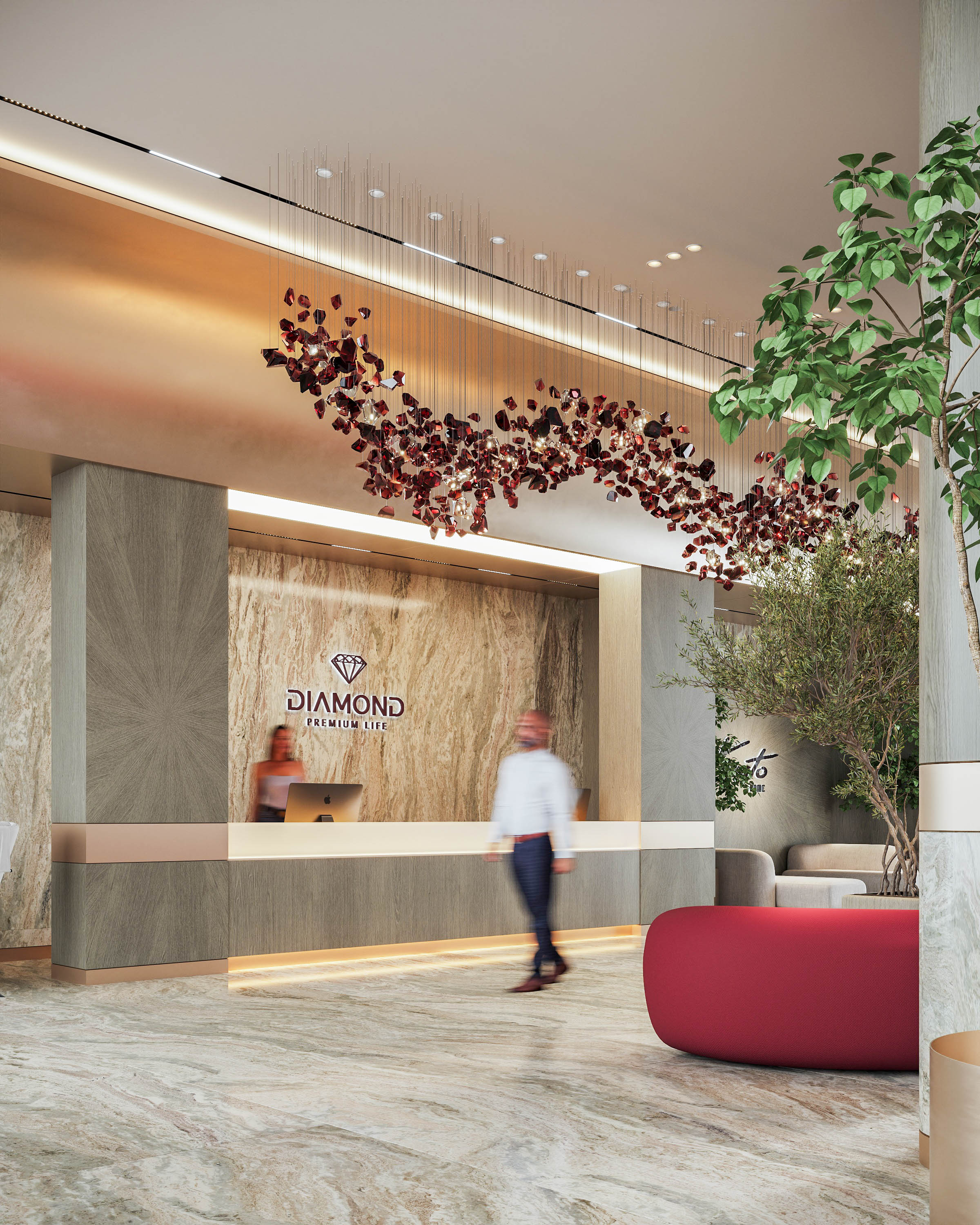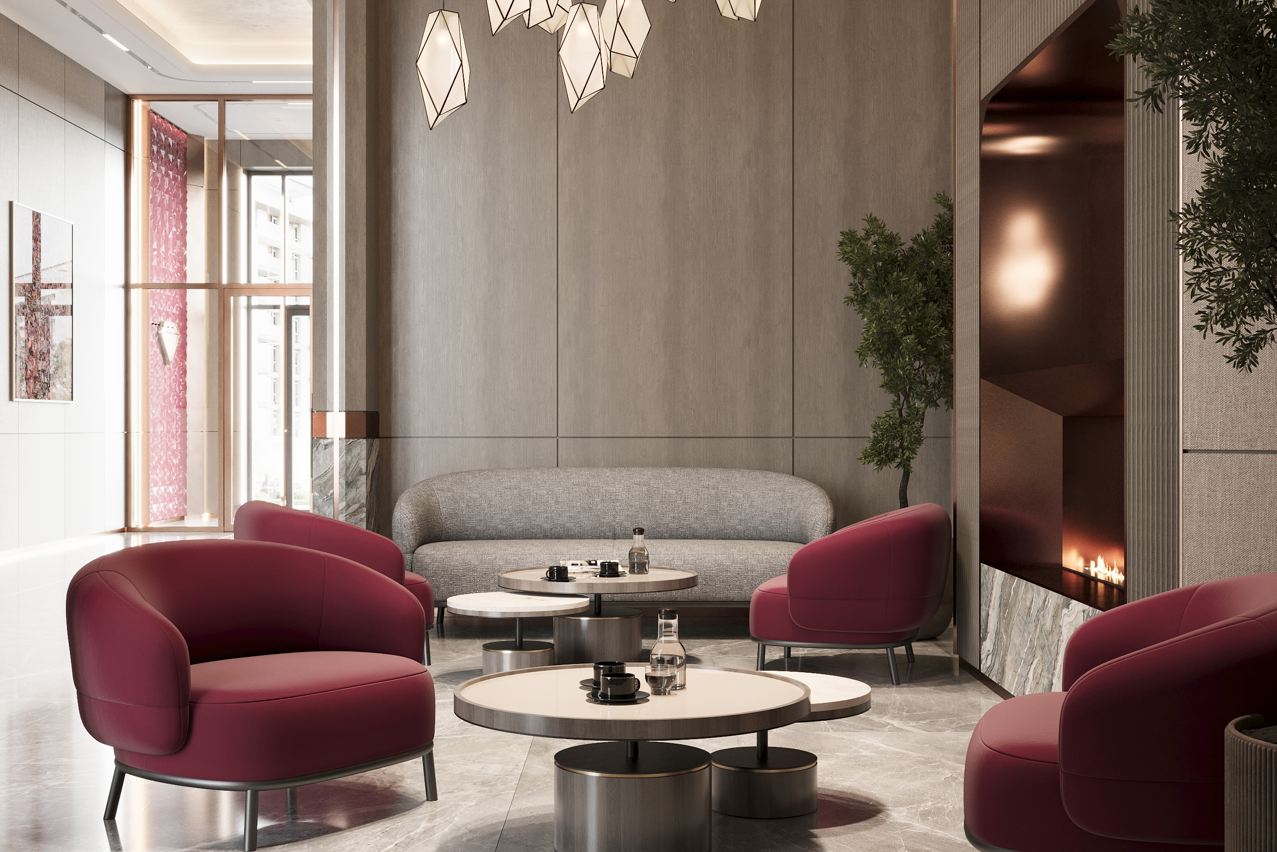Отдельный блок отдан под Grand lobby: высокий свет, авторская отделка, атмосфера частного клуба.